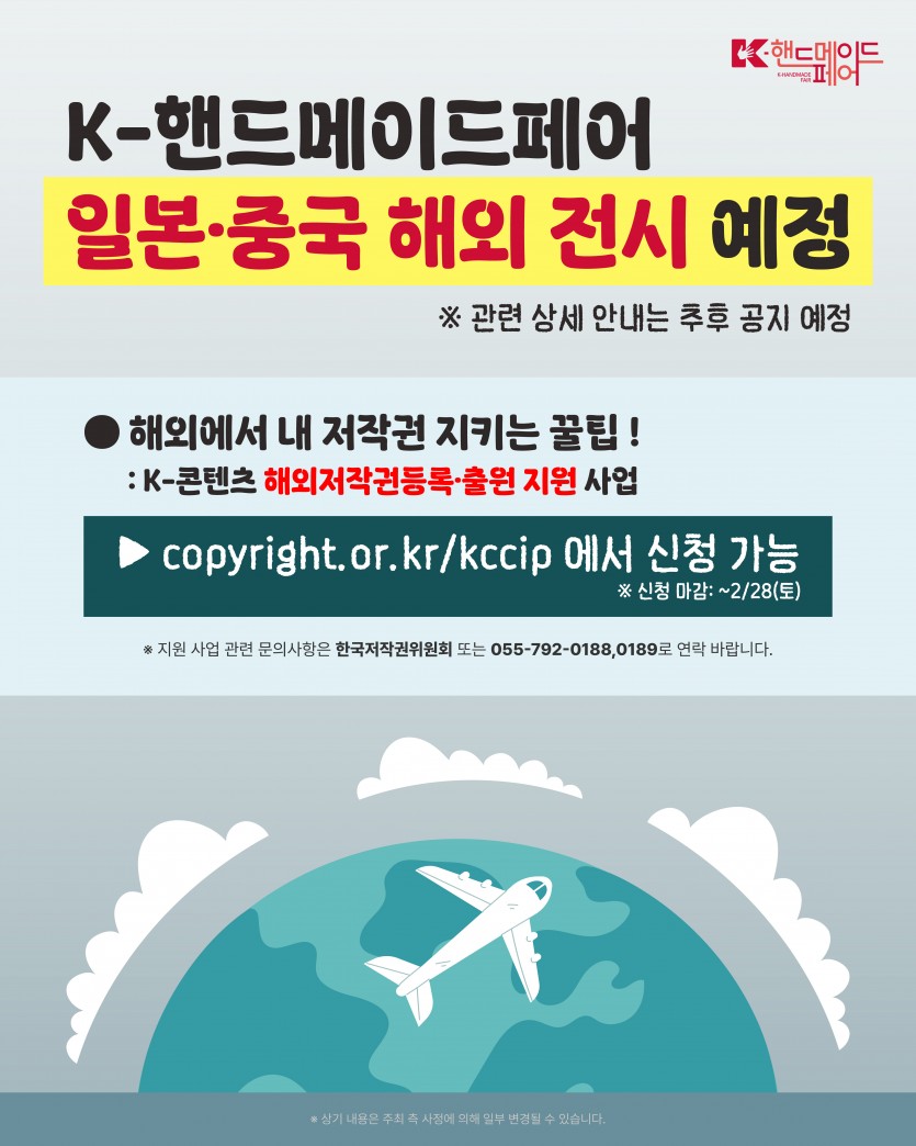 ○ K-콘텐츠 해외저작권등록·출원 지원 사업 (*2/28(토)까지)